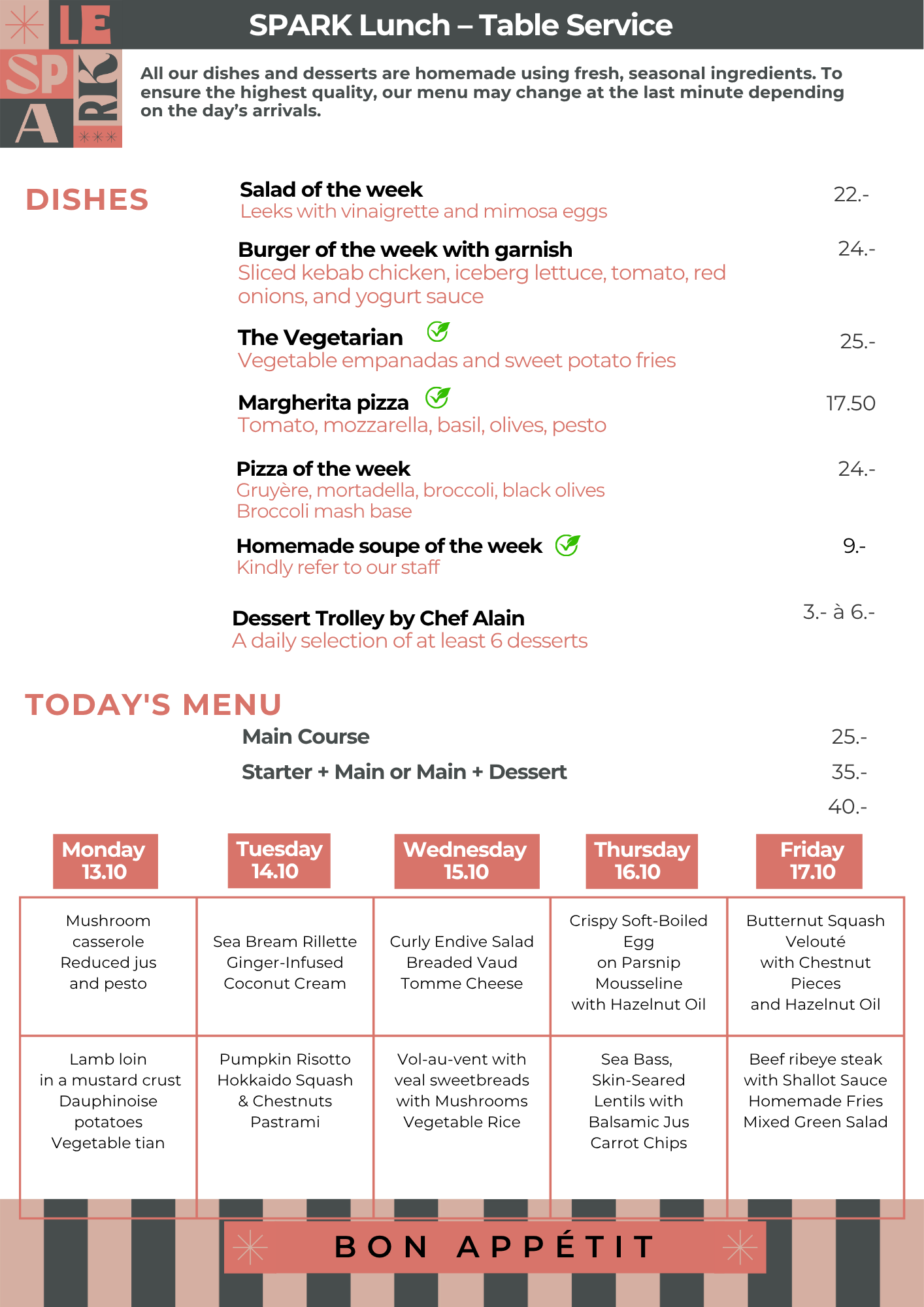 Welcome to the warm and welcoming setting of Le Spark restaurant, where you’ll discover a culinary experience full of flavour and variety.